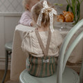 抹茶のやわらかな色合いに、落ち着いたピーナッツのアーシーなニュアンスを重ねた配色が特徴。春の空気をまとったような、ほんのりドリーミーな印象に仕上げました。さまざまなカラーと調和しやすくスタイリングしやすい一方で、程よく個性も引き立つカラーリングが魅力です。