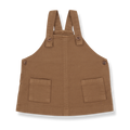 肩ストラップとサイドはコロゾボタンで調節・開閉が可能。フロントのパッチポケットがキュートなアクセントに。重ね着しやすく、季節を問わず活躍する一枚です。