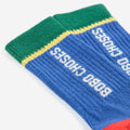 美しいブルーに差し色が映えるソックス。サイドのロゴも特徴的です。