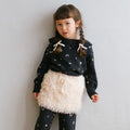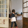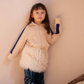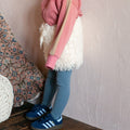 ボリューム感がありながらも重すぎず、軽やかな着心地を実現しました。ウエストは総ゴム仕様でリボン付きのため、フィット感と着脱が簡単。上品なアイボリーカラーがどんなコーディネートにも馴染み、ぬいぐるみのような愛らしい雰囲気を演出します。秋冬のスタイルに華やかさと快適さをプラスする一着です。