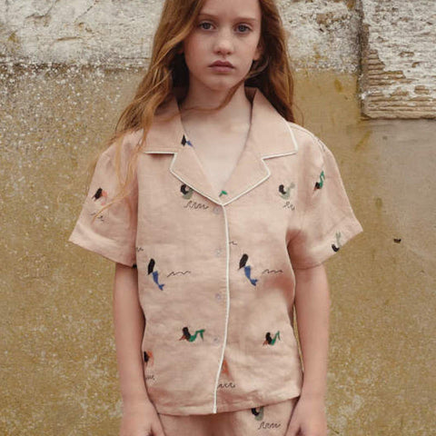 Fish & Kidsは、洗い加工やグラフィック、海のスピリットから生まれる自由で大胆な世界観を持ち、過去へのオマージュを現代的でフレッシュに表現するブランドです。着心地の良さとコーディネートのしやすさを大切にし、多くのアイテムはユニセックスで、ジェンダーレスなものづくりを軸としています。コットンやリネンなどの天然素材を中心に、新しい素材の探求と丁寧なウォッシュ加工によって、一点一点を特別で唯一無二の仕上がりに。大人から子ども、赤ちゃんまで楽しめるカジュアルで遊び心のあるデザインに、フェミニンなエッセンスを加えたコレクションを展開しています。
