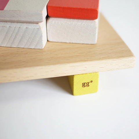 そんなgg*のおもちゃには木の風合いを感じられるよう木目がうっすら見える塗装が施されています。カラフルで可愛いだけではなく、表面仕上げには蜜蜂のミツロウから作ったドイツ製のビーワックスを使用するなど赤ちゃんにも安心なモノづくりにこだわっています。