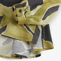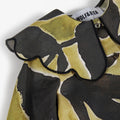 深まる秋を表現したかのような色彩が素敵なブラウス。前後差をもたせた後ろ身頃にはフリルが施された、とても華やかな一枚。