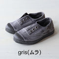 くたっとしたキャンバス地の軽いフォルムが特徴のシューズです。かかとにはcientaのブランドタグ付き。
