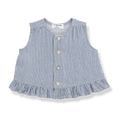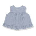 デニムのような絶妙なブルーとホワイトのストライプが涼しげな、ノースリーブブラウスです。