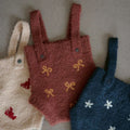 深みのあるブラウンに、愛らしいリボンの刺繍がアクセントとなり、ナチュラルで優しい雰囲気を演出します。肩と股部分は動きやすさを考えたゆったり設計で快適にお過ごしいただけます。