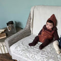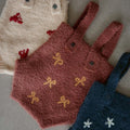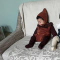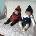 赤ちゃんの可愛らしさを引き立てる、ふんわり暖かなもこもこニットロンパース。