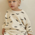 【D1】Quincy Mae(クインシーメイ)2025AW WAFFLE SLOUCH SET -BATS- コウモリ柄トップス+パンツセット