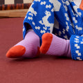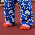 These socks feature a squirrel motif holding blue berries. The soft fabric and careful stitching make them comfortable to wear.